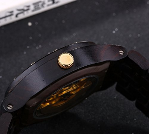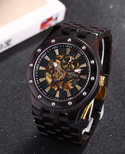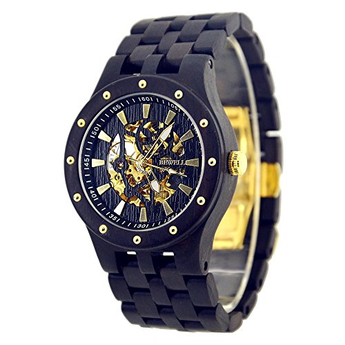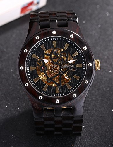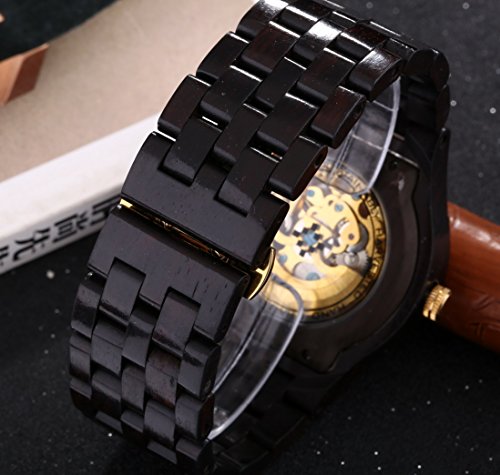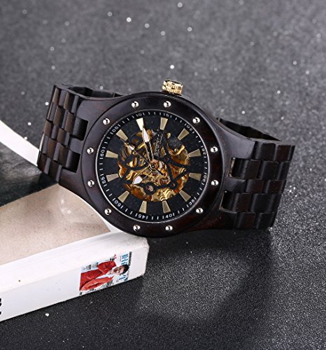 Men's Automatic Skeleton Mechanical Black Wooden Watch