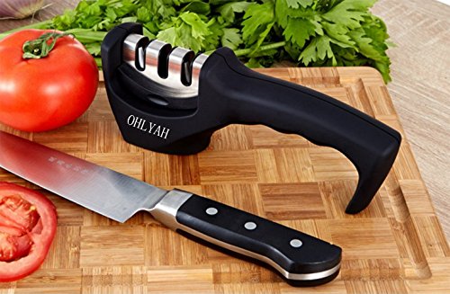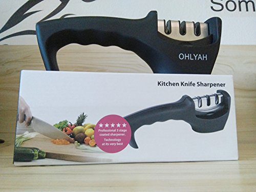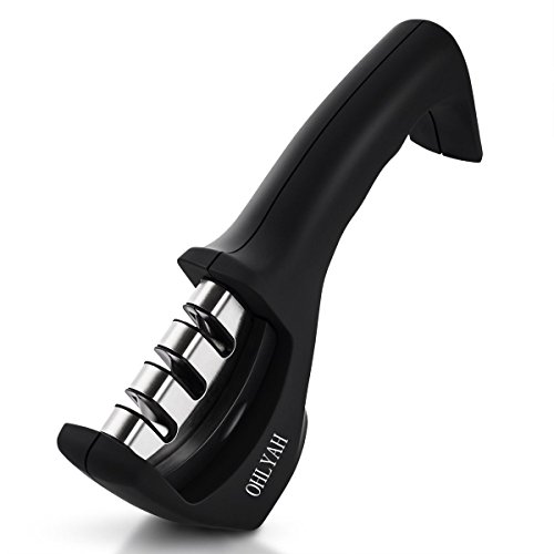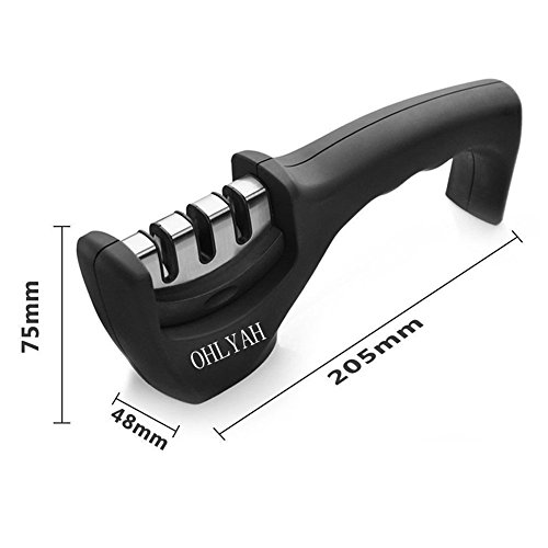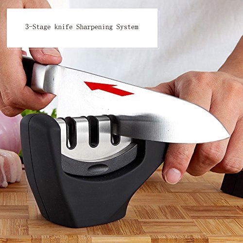 Knife Sharpener, 3-Stage knife Sharpening System for Straight & Ceramic Kitchen Knives Safety Handle, Black