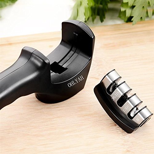 SAFETY HANDLE - ABS plastic handle with slip-resistant base and contoured handle offers you a firm and more secure grip. The ergonomic design can suit your palm well Sharpen knives with ease and without danger
