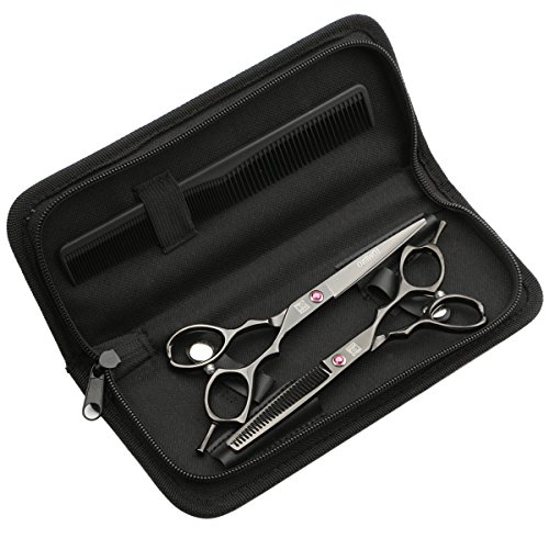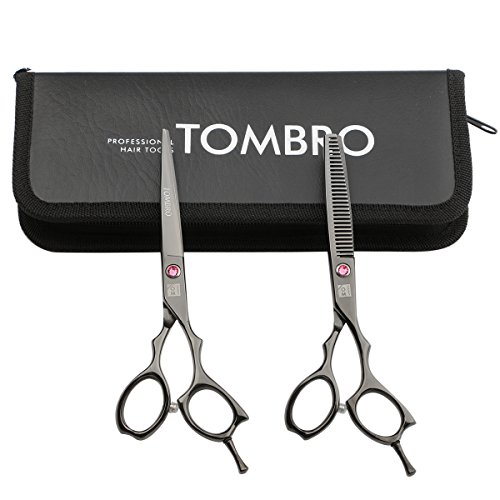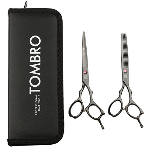 TOMBRO Professional 6" Razor Edge Barber Ergonomic Hair Cutting and Thinning/Texturizing Scissors/Shears Set (Black)