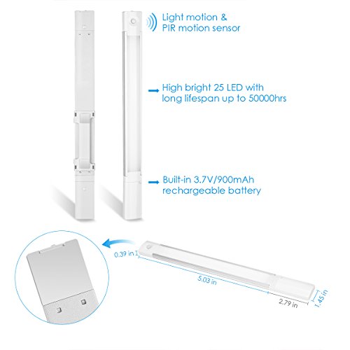 AMIR Motion Sensor Closet Lights, Wireless Wardrobe Light, 25 LEDs Detachable Light Bar, Multiple Installations , Night Light Bar for Wardrobe, Cabinet, Closet, Bathroom, Bedroom (USB Rechargeable)