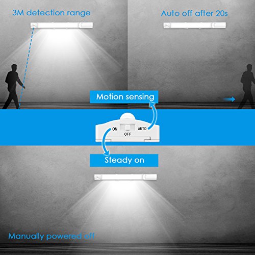 - 3-Mode Smart Illumination: Consists of motion detected auto on/off, off and normally on mode. When it’s switched to auto mode, the light bar will automatically light up when motion is detected and auto off after 20s. Besides, switch it to ON for normally on mode when consistent lighting is required. What’s more, switch it off to save power.