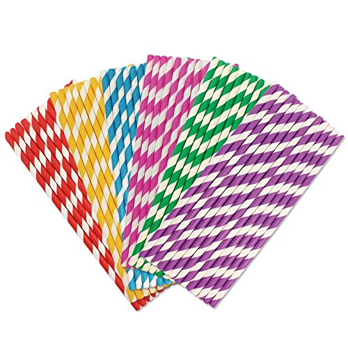 -. Feature : Each Straw measures 7.75 inches x .25 inches / Perfect for all occasion, birthday, party, wedding, holidays / Pack of 150 Paper Drinking Straws, each color 25 pack / Green, pink,red,purple,yellow and blue stripes paper drinking straws / Made from natural material, food safe ink