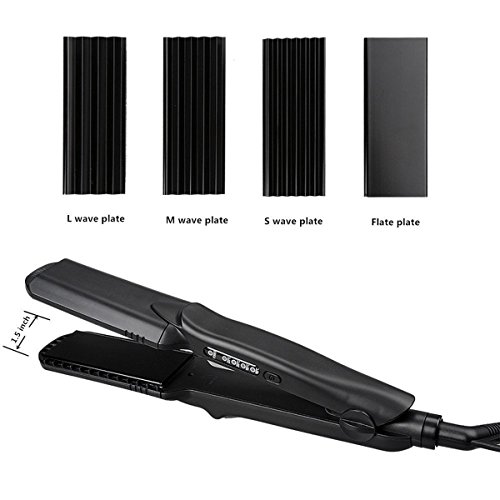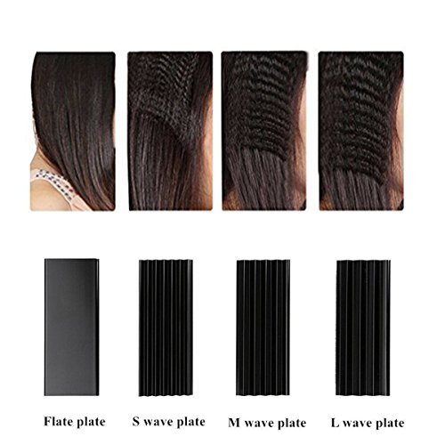 - 4-in-1 Interchangeable Plates Hair Styling Tool: L wave plate, M wave plate, S wave plate and flat plate, and it has prevent burns design function. Multi-functional hair styling tool, straight & curl corrugated wave, you can make different hair style everyday