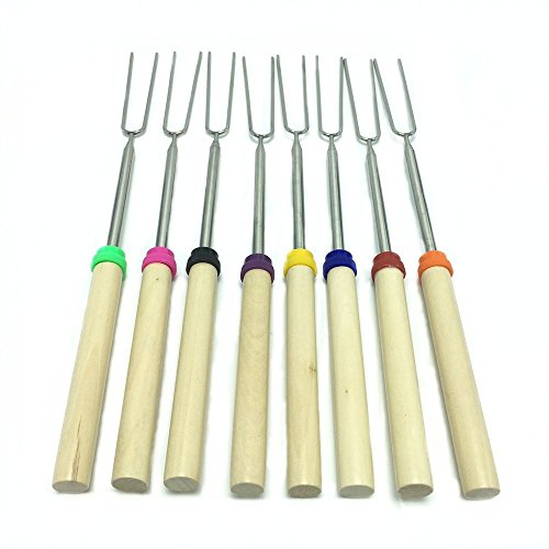 Hyindoor 8pcs Barbecue Skewers Marshmallow Roasting Sticks Hot Dog Fork