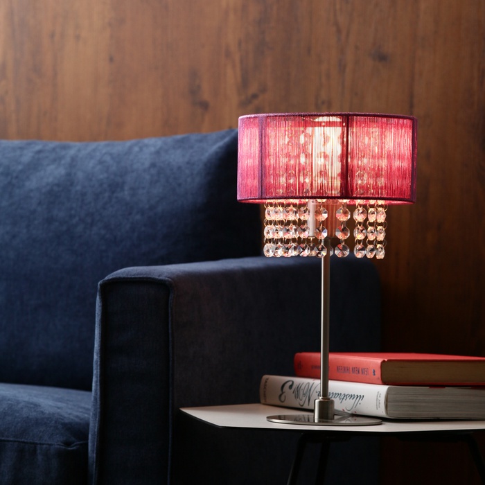 라메감이 있는 스트링 소재의 쉐이드를 사용한 테이블 램프입니다.아크릴은 아니고 수정 유리를 매닮이다 듯한 모양이고 있으므로 빛의 반사가 아름답고,밤은 방을 한층 더 고저스(gorgeous)에 연출해 줍니다.소파나 베드의 싸이드,보드 위에 좌우 대칭으로 두어 주면 보다 분위기가 나옵니다.