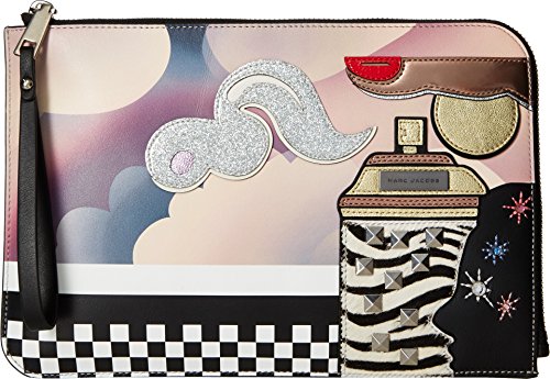 Studio : Marc Jacobs Publisher : Marc Jacobs Binding : Accessory Product Description Get all the room and style you need carrying the Marc Jacobs™ Clouds Julie Verhoeven Flat Pouch. Pouch made of leather. Top-zipper closure with decorative wristlet strap for desired carry. Lighthearted patchwork in colorful detail adorned throughout decorated with glittering applique and silver-tone hardware. Brand logo engraved hardware at the front. Lined interior. Imported. This item may ship with an attached security tag. Merchandise returned without the original security tag attached or a damaged tag may not qualify for a refund. Measurements: Bottom Width: 10 1?4 in Depth: 1?4 in Height: 7 in Handle Length: 10 in Handle Drop: 4 1?2 in Weight: 8.4 oz This product may have a manufacturer's warranty. Please visit the manufacturer's website or contact us at warranty@support.zappos.com for full manufacturer warranty details. 0