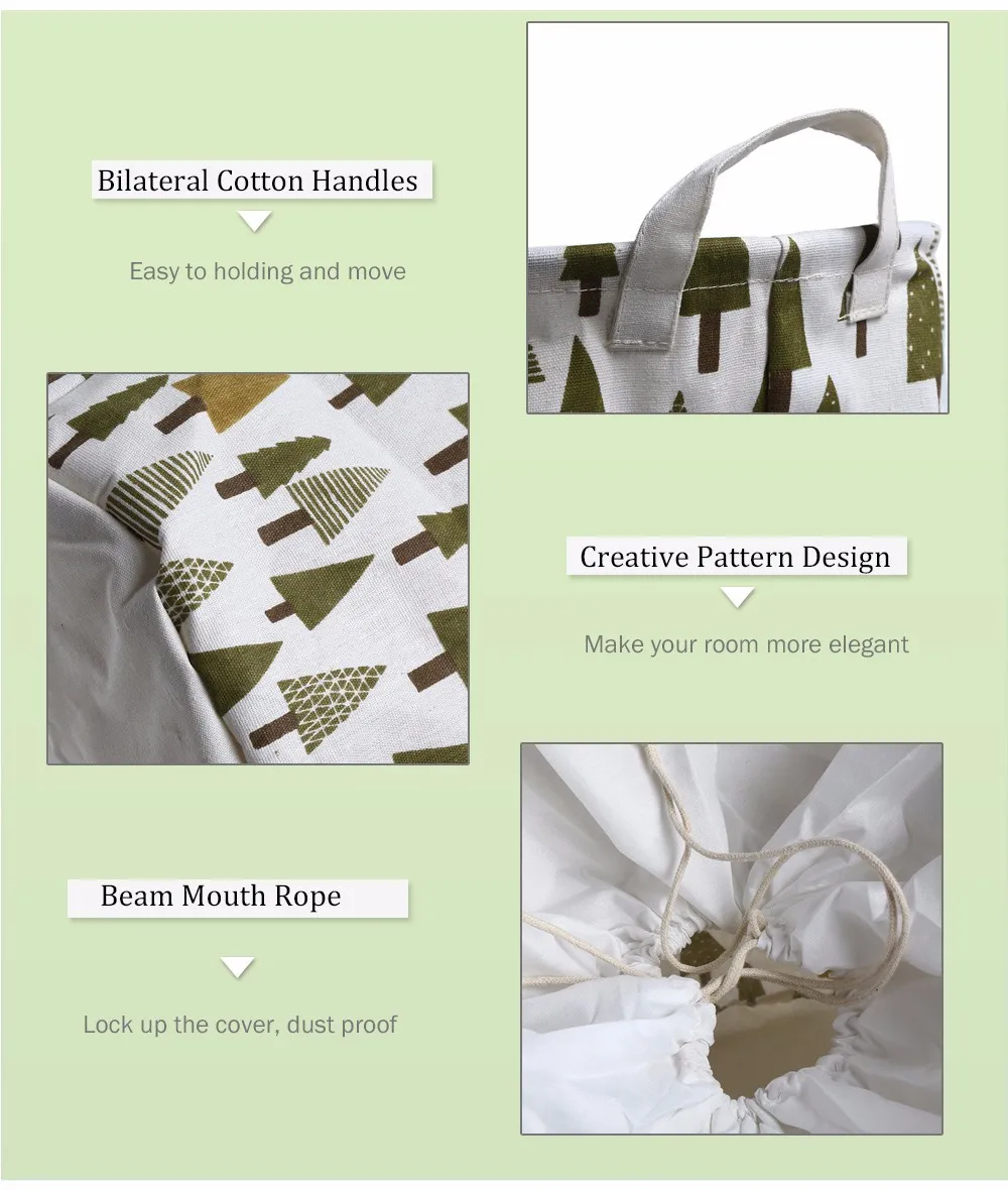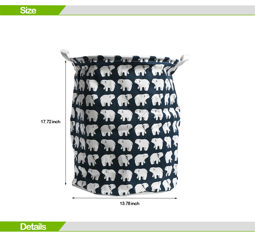 Main Features: - Large capacity for storing all kinds of debris, clothing and toys, which makes your room tidy and clean - It can be pressed fold storage, space saving - Bilateral cotton handles and lightweight, easy to holding and move - Made of high-quality of cotton and linen materials, non-toxic, no peculiar smell, safe to use - Creative pattern design, make your room more elegant