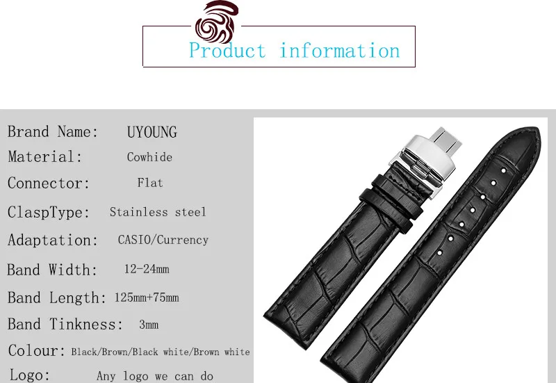 [해외] 품질 정품 가죽 시계 밴드 스트랩 블랙 브라운 남성 여성 시계 스트랩 카시오 브랜드 일반