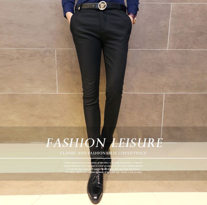 卓野 秋冬韩版潮男裤子哈伦休闲裤英伦修身小脚裤黑色束脚长裤