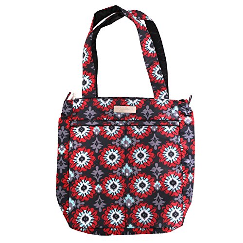 The Ju-Ju-Be Be Light Tote Bag is chic, smart, ultra-light and functional with extra pockets for added versatility. It’s one thing to be light. It’s another to be ultra crazy, feather light! This awesome tote can pack down so small that you’ll swear it’s not really there, but it still holds a ton when you need it to. Perfect sized straps and just the right number of pockets. You won’t find a better bag…only heavier ones! The inner lining is protected with an Agion natural antimicrobial treatment that inhibits and reduces the growth of odor-causing bacteria, mold and mildew. The outer fabric is treated with Teflon fabric protector, making it easy to repel stains and keep the Be Light clean. The Be Light has (3) total pockets for keeping you ultra-organized - (2) on the front and (1) on the inside - and a 12-inch drop strap. The front of the Be Light has (2) Thinsulate-lined pockets that will help you to keep all your beverages hot or cold. The main zippered section is large enough to hold all your daily essentials, plus some extra room for things like diapers, wipes and soft toys for your little one. Inside the main section is a zippered inner pocket that is perfect for holding cell phones, sunglasses and even your camera. This bag is machine washable and measures 12-inches by 14-inches by 3-inches in size. The Dancing Dahlias print is a vibrant multicolored floral pattern on a black fabric, with a bright pink lining and silver colored metal hardware. The Ju-Ju-Be Be Light Tote Bag comes with a 90-day limited warranty that protects against manufacturing defects. Founded in 2005, Ju-Ju-Be is a Southern California company that fuses science, style, and attitude to create diaper bags, purses and other accessories that are both fashionable and fun. Ju-Ju-Be assimilated the most advanced technology possible to create a stylish and intelligent product line that's unrivaled in the industry.Feature