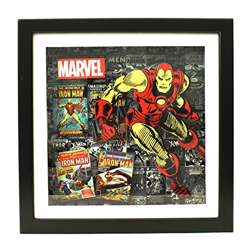 - Framed 3-d display of iron man in a classic action pose