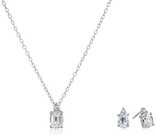 -. Title : Sterling Silver Oval Stud Earrings and Pendant Necklace Jewelry Set