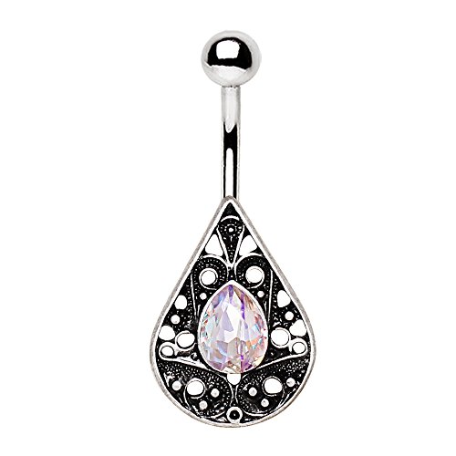 Product Description316L Stainless Steel Ornate Jeweled Teardrop Belly Button Navel Ring0