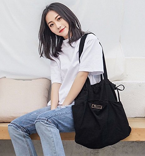 -. Feature : Eco-friendly casual life style, 100% cotton canvas handbag. Durable and fashionable. Fabric feels softer and skin-friendly. Never go out of style, good companion for exquisite life. / Unique drawstring closure design, quick access, safe and reliable, best for long-distance journeys. Straps moderately long suitable for shoulder bag and messenger bag, you can choose the way you like to show your style. / 1 main internal compartment, 3 external large open slot pockets. Easy and quick access for your essentials, such as mobile phone, wallet, lipstick and perfume bottle, etc. / Occasions: Gym, jogging, shopping, sports practices, day trips and the beach, pack it for your travels, and every other indoor and outdoor activities. / Dimensions: 15.7inch*16.9inch (Height*Length). Vertical height of shoulder straps: 14.1inch.