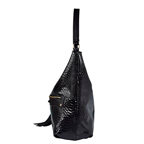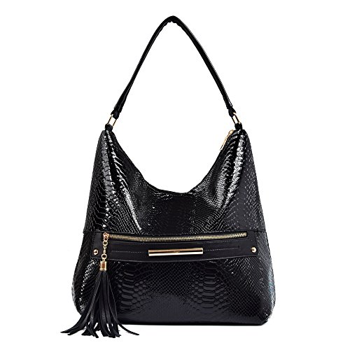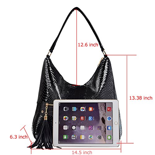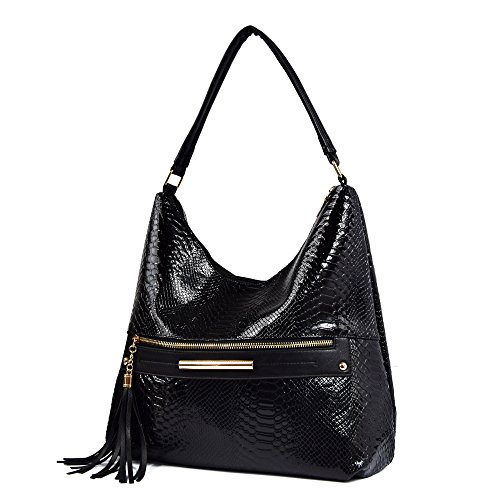 Women Hobos Shoulder Bag Snake Pattern Tassel Handbag Purse for Lady