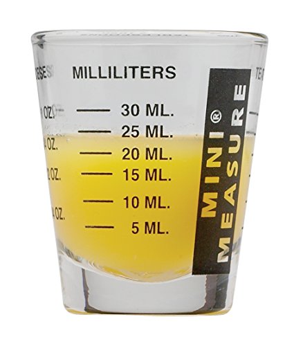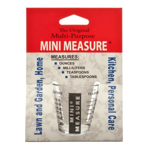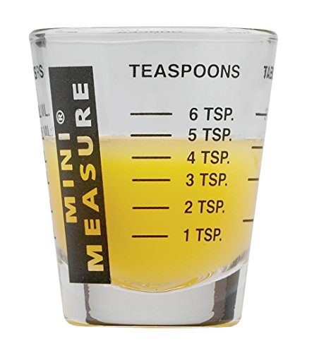 Product Description Tired of trying to find the measuring spoons in your overcrowded kitchen gadget drawer? With the Mini Measure, you'll dig no more! It's an amazing shot glass measuring devise. Marked on the glass are measurement markers for teaspoons, tablespoons, ounces and milliliters. All of those different measurements in one measuring devise. Leave what's lost, lost in the drawer because with the Mini Measure you'll have 26 measurements all in one little, neat package that's easy to store and easy to find.