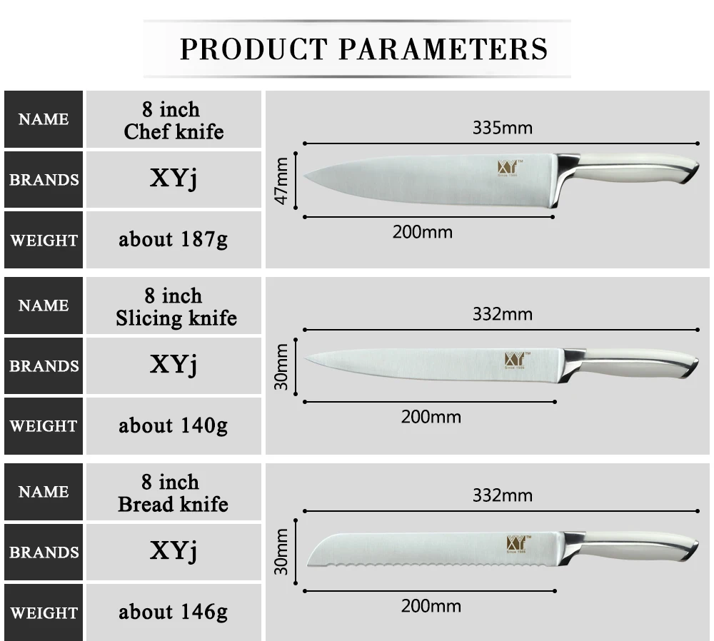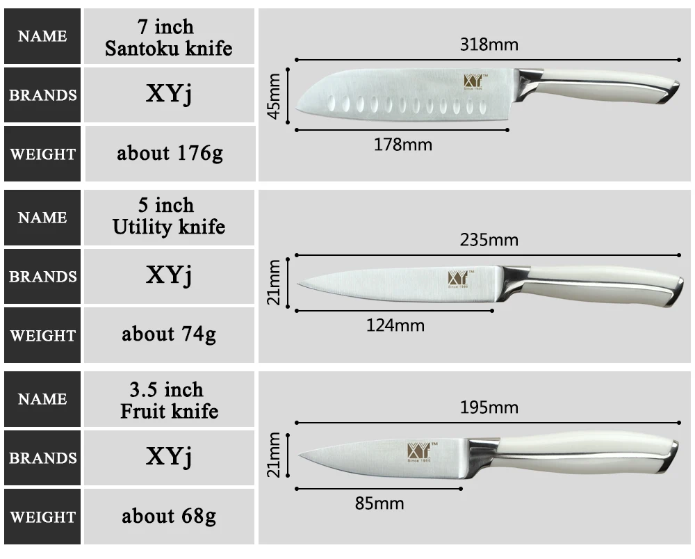 Knife Size:3.5 inch, 5 inch, 7 inch, 8 inch, 8 inch, 8 inch