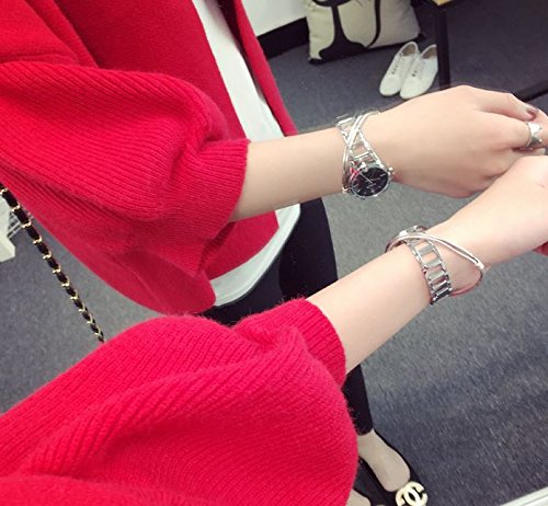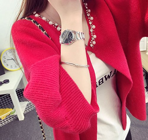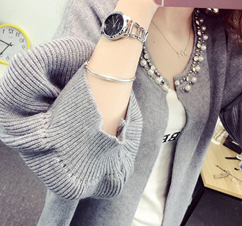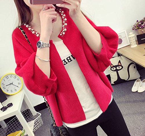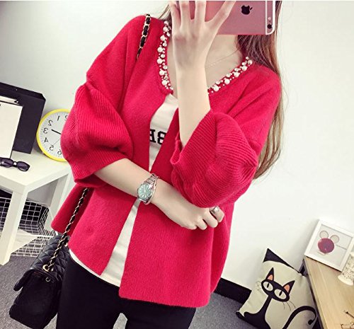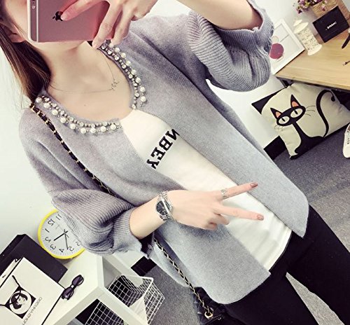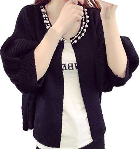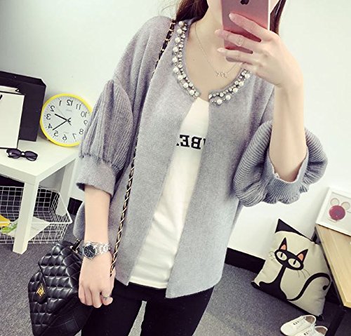 -. Title : (カナクレール)Canacreer ノーカラー ニット カーディガン レディース トップス パフ袖 ビジュー 付き 丸首