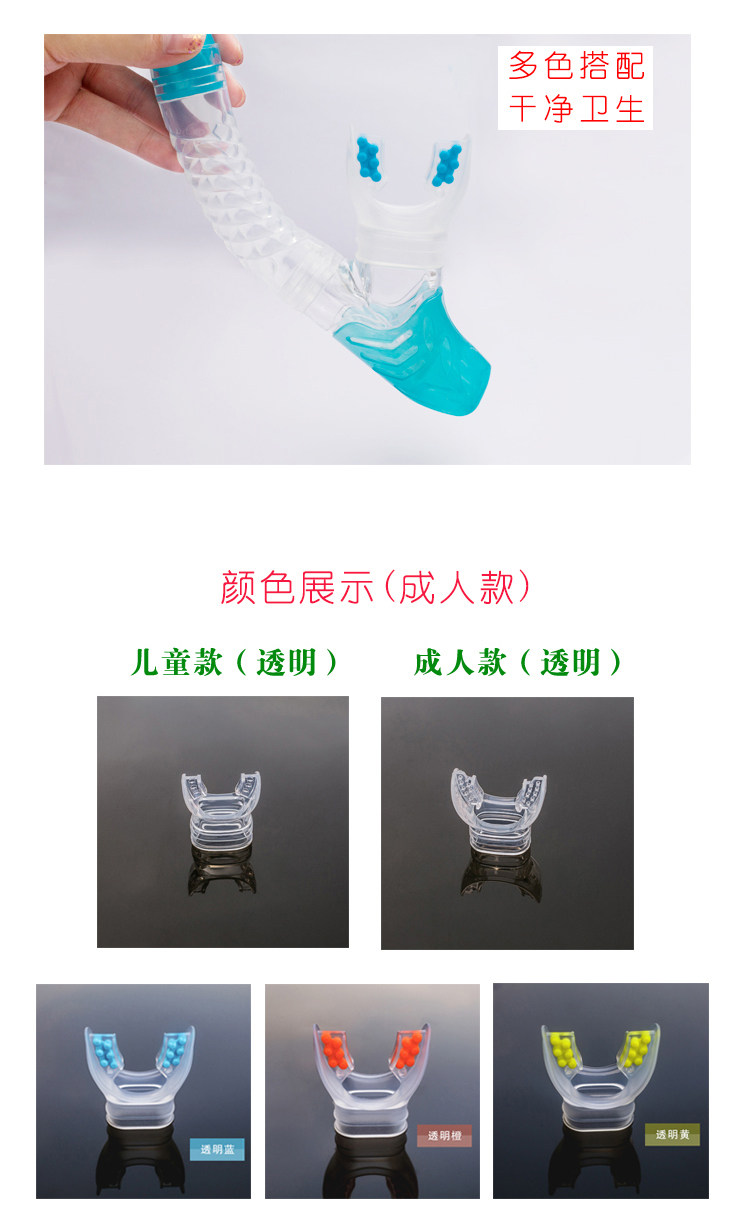 •100%硅胶,无毒,抗过敏;抗老化、适宜深海潜水空气瓶的咬嘴接口; 也可接在呼吸器上用。