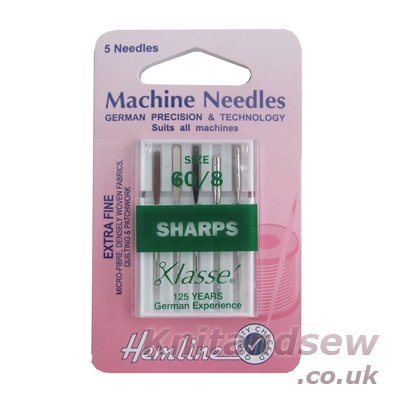-. Title : Hemline H105.60 Extra Fine Sharps Machine Needles 5x 60/8 Tight Woven Synthetics