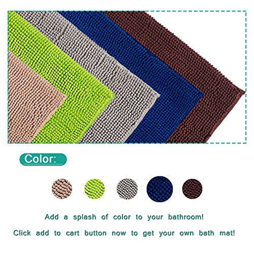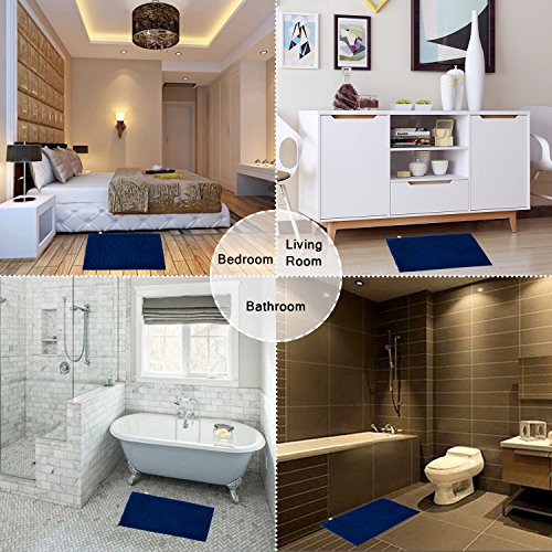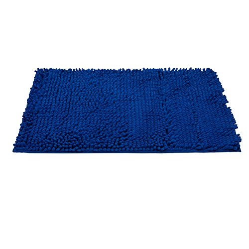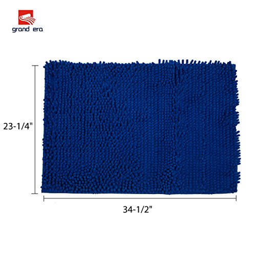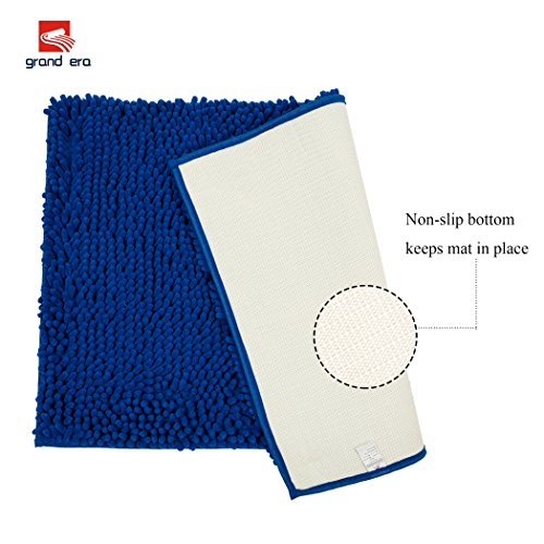 Grand Era Large Microfiber Shag Bathroom Mat Non-slip Chenille Bath Mat Water Absorbent Shower Mat Perfect for Bathroom, Super Soft, 24"x 35", Blue