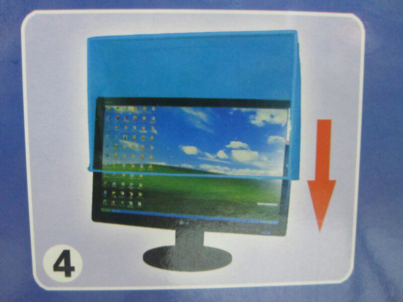 第四步:清理下防尘罩,把它清理整齐,然后以上往下对着显示器的屏幕下方开始套上去,这样就OK了。
