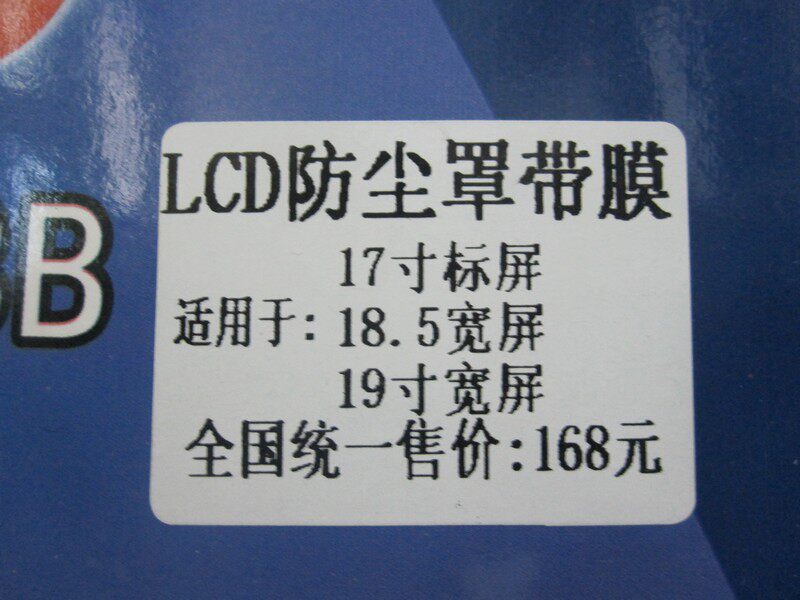 特点:液晶屏防尘罩,保护膜二合一套装,适用于17寸、19寸宽屏