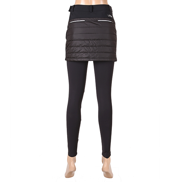 치마 레깅스 스타일로, 치마는 패딩치마로 제작해 보온성을 높임.