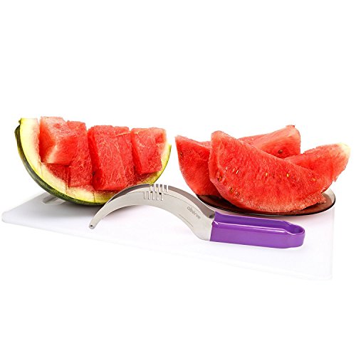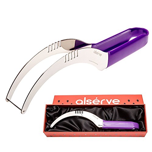 Watermelon Slicer for Smart Spouse Melon Corer Cutter Tongs & Server Durable Stainless Steel 430 with Sturdy Cutting Wire and Silicone Handle Makes in Premium Gift Box a Great Gift