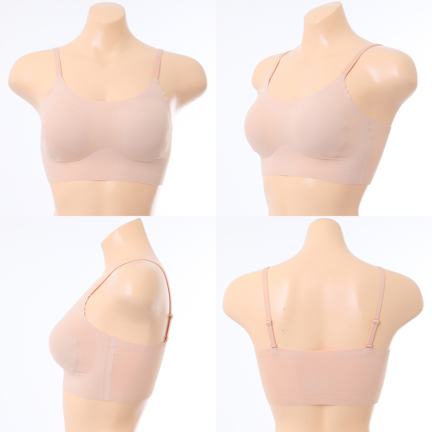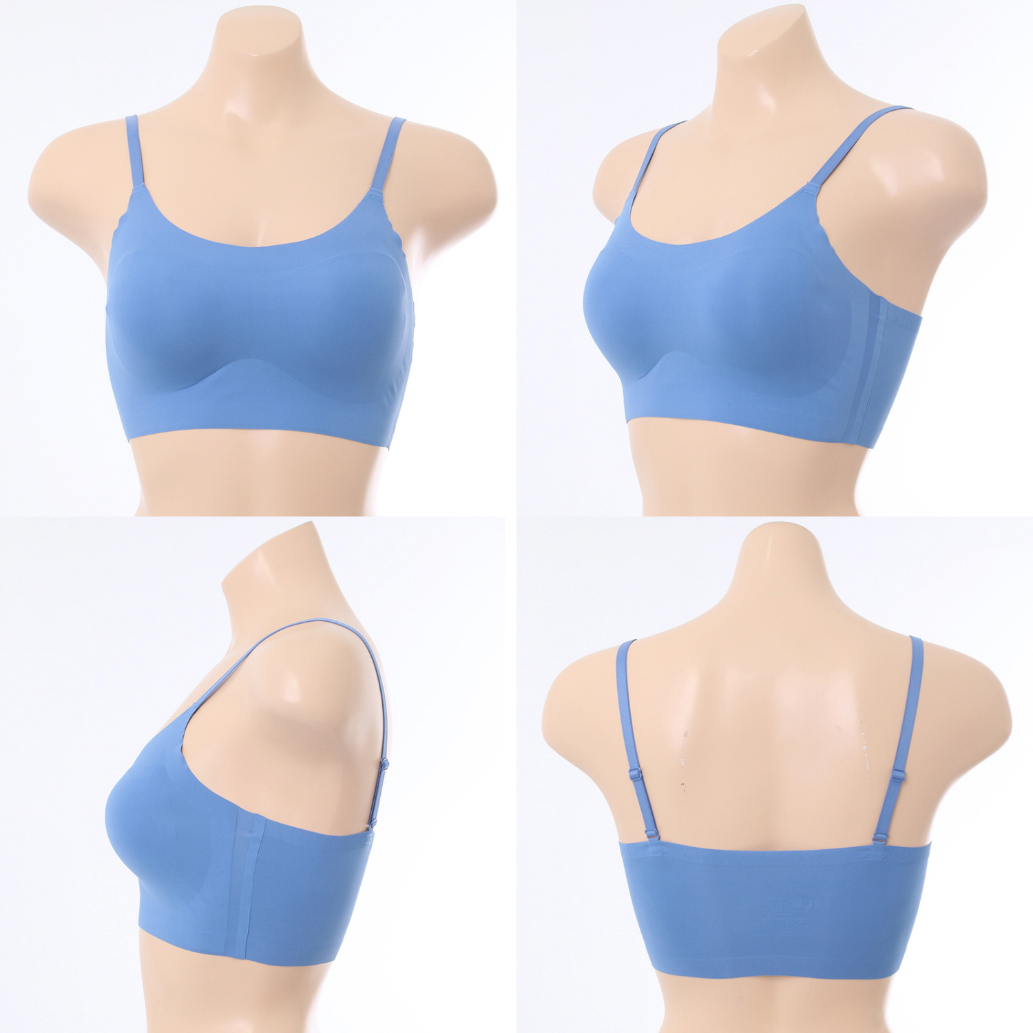 프리컷팅원단에 접착기법으로 봉제선을 없앤 심레스 스타일로 안입은 듯한 편안한 착용감을 주는 제품입니다.탈착 가능한 패드와 조절 가능한 스트랍으로 보다 저스트한 핏감을 연출하며