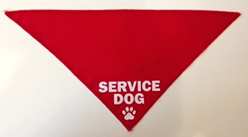 -. Feature : Service Dog printed on bandana / Three sizes (teacup, small, medium/large) / Seven colors / No special clasps - just one tie. It is that simple. / Hand wash. Cold Water. Made in the USA from imported fabric.