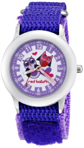 -. Binding : Watch -. Brand : Red Balloon -. Color : Silver/Steel -. Department : unisex-child -. EAN : 0843231062801 -. Feature : Round Time Teacher Stainless Steel Watch with owl character on dial and Red Balloon shaped Seconds Hand. / Meets or exceeds all US Govt requirements and regulations for Children's watches. / Recommended for Ages 3-7 years old. Includes a Time Teacher Punch Out clock for Parents to Teach their Children. / Accurate Japanese Quartz movement, scratch resistant mineral crystal, hook and loop Nylon strap / Water Resistant to 99 feet: withstands rain and splashes of water, but not showering or submersion. / 1 Year Limited Manufacturers Warranty -. Label : Red Balloon -. Manufacturer : Red Balloon -. Model : W000334 -. MPN : W000334 -. NumberOfItems : 1 -. PackageQuantity : 1 -. PartNumber : W000334 -. ProductGroup : Watch -. ProductTypeName : WATCH -. Publisher : Red Balloon -. ReleaseDate : 2012-10-01 -. Studio : Red Balloon -. Title : Red Balloon Kids' W000334 "Love Owl Time Teacher" Stainless Steel Watch with Purple Nylon Band -. UPC : 843231062801