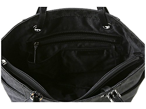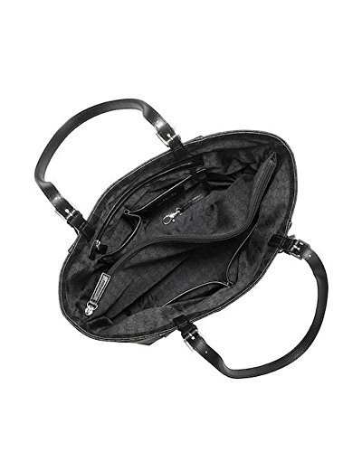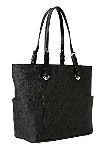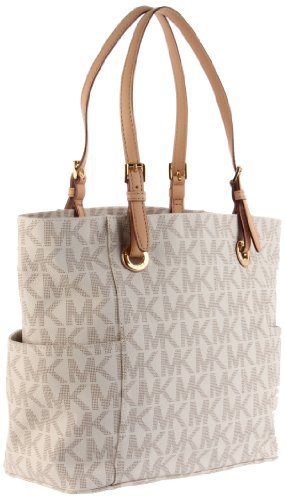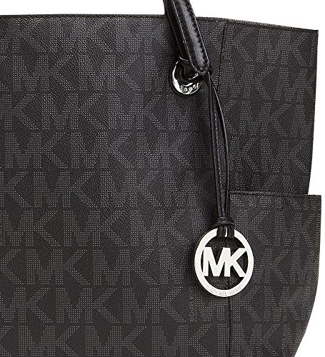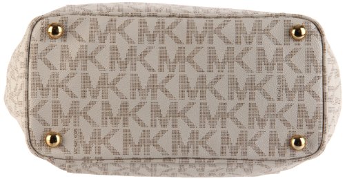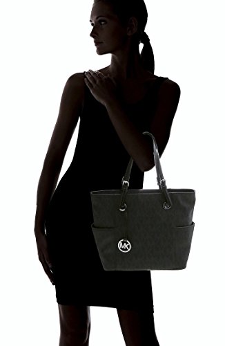 Amazon.com You could easily stash your life in this roomy zip-top tote from MICHAEL Michael Kors. The Signature tote features interior zip and slip pockets for small essentials, while the exterior showcases two large open pockets for easy-to-grab items. Smooth leather handles accented with shiny hardware complete the sophisticated, pulled-together look, and metal feet protect the bottom of the bag while you are on the go. The dangling cutout logo medallion provides a signature finishing touch. 0