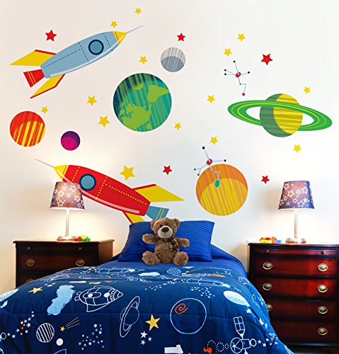 Oopsy Daisy Galactic Travels Peel and Place, Green/Orange, 54" x 45"