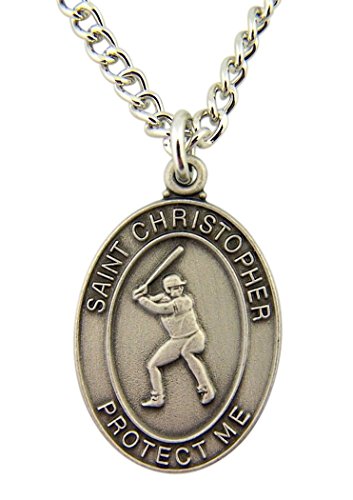 -. Title : Pewter Saint Christopher Baseball Medal on Nickel Chain Necklace, 1 Inch