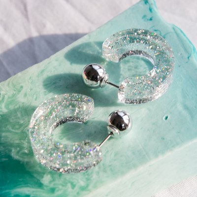 아크릴 소재의 원형 모형의귀걸이를 소개합니다:) 귀에 딱 붙는 원형 모양으로독특하면서도 스타일리쉬하게 연출 가능합니다.투명 아크릴 소재여서바캉스에서의 방수도 보장하고더욱 시원해보이게 해주는 아이템이 될거에요:)전체적으로 심플하지만 펄이 들어있어햇빛에 반사되면 반짝반짝 빛날 아크릴 귀걸이데일리로도 강력추천합니다.
