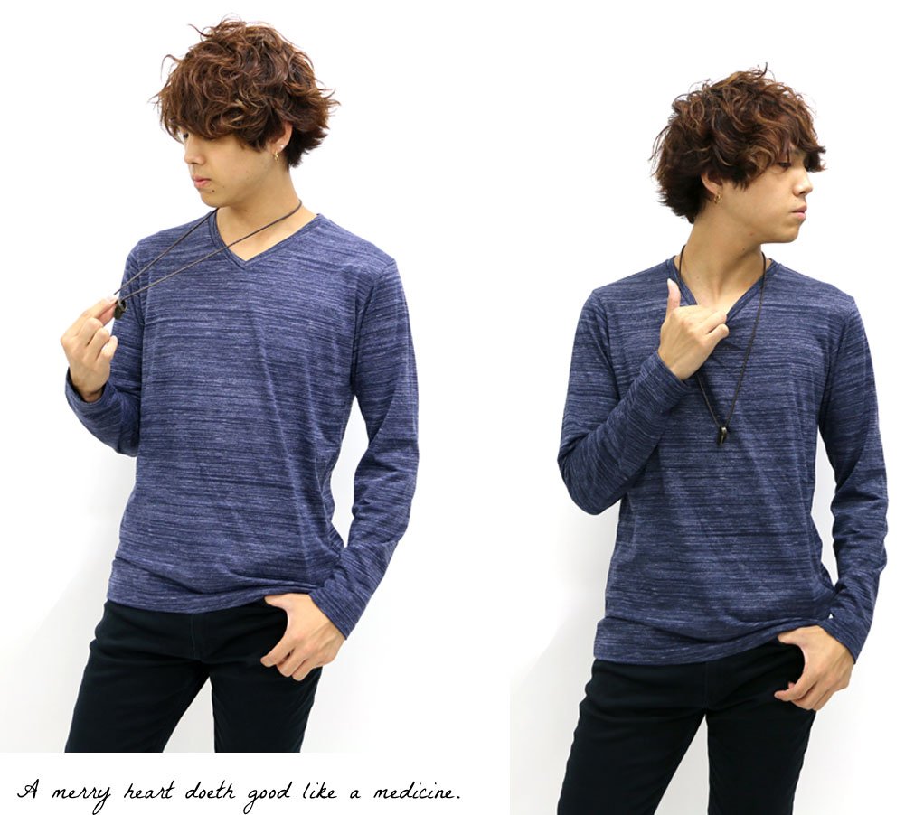 - We will introduce long sleeve V neck T-shirt of heat-resistant material from MARKAWA We offer a wide variety of color variations with 5 color expansion wearing in casual wear with a profitable tee shirt heather with a set with necklace