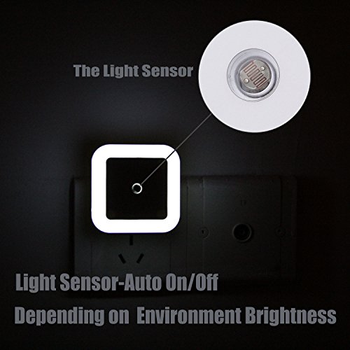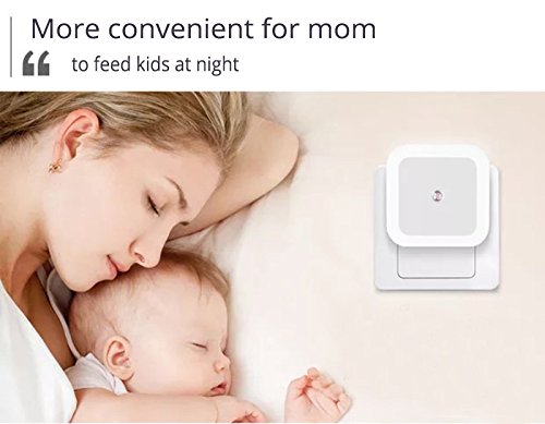 -. Feature : Durable And Baby-Safe Night Light: Made with the safety of children in mind, sturdily constructed with toy-grade ABS+PP plastic and provides a 100% safe playing environment / Eye-caring LED lights: Energy-efficient and eye-caring LED creates a uniform non-flickering light that doesn't hurt the eyes / Smart Auto On/Off: Built-in sensitive light sensor, the nightlight automatically turns on at dusk and off at dawn. / Safe and Offset Plug Prong: With standard plug, no need batteries, not heating / Package: Comes in pack of 4, the nightlight is perfect for hallway, bathroom, bedroom, kitchen, living room, nursery, kids room, or anywhere you need some extra light during the night without turning on a harsh bright light