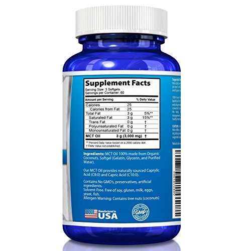 MCT Oil Capsules from Organic Coconuts - 1000 mg 180 Softgels - Great Pills for Energy and Weight Management (formerly Young Life Research,...