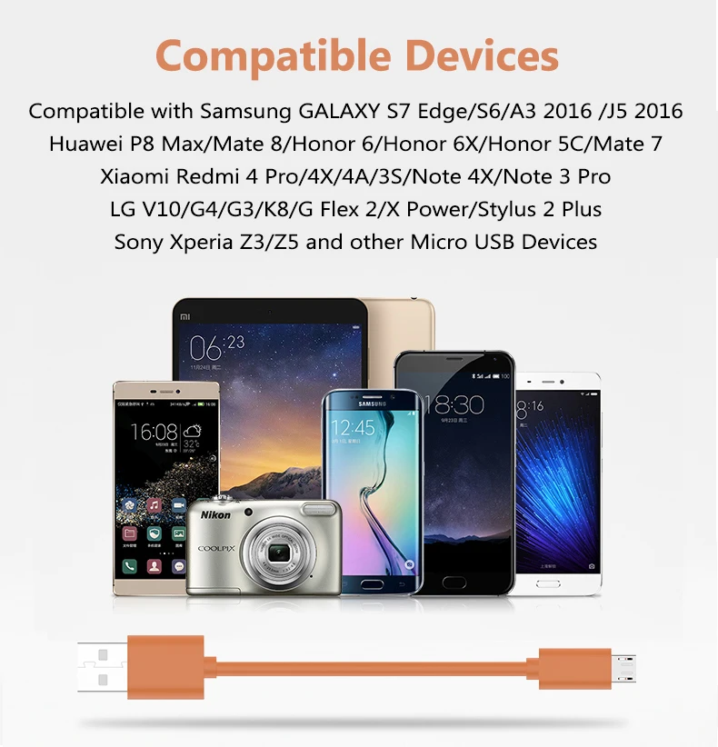 Package Include:2 Pieces Micro USB Cables ( Same Color)