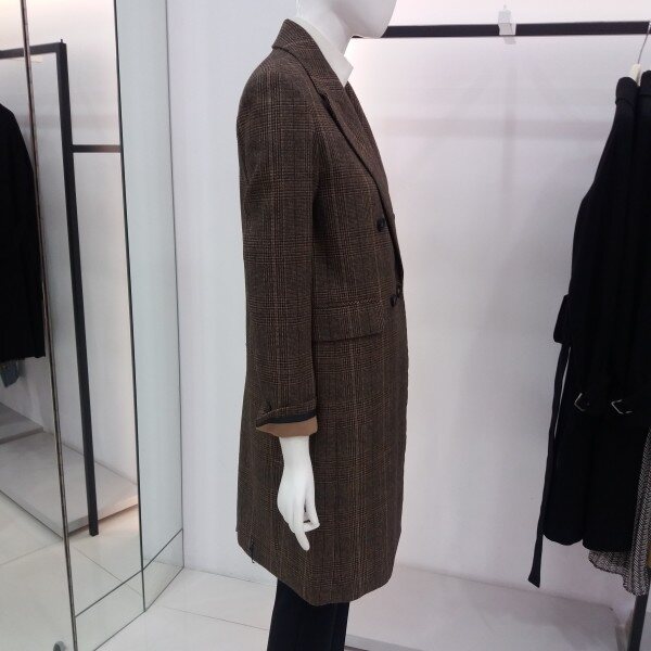 NICE CLAUP, 베이직한 체크 더블 롱 자켓입니다 입을시 핏감이 이쁜자켓 추전드려요~~