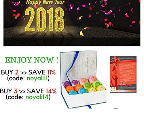 (BOOST SALE) For only two days! We cut the price Luxurious and relaxing, Use a Noyali Bath Bomb any time of the day as an excuse to pamper yourself - this set contains twice their amount in a dozen balls in two different sizes and six different combinations of scents; Packaged in a lovely, reusable box, they make a great gift for those who love to soak in a tub, enjoy aromatherapy, or need a stress reliever during bath time