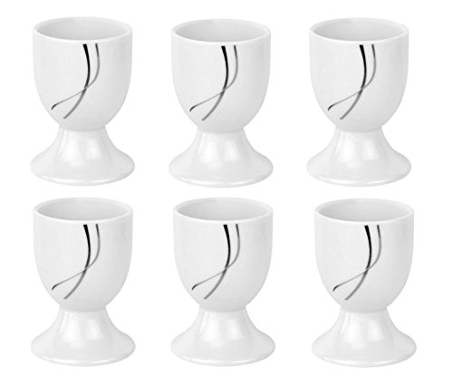 -. Feature : Super schicker Eierbecher Silver Night / Hersteller: Van Well / edles Porzellan weiß mit schwarz-weiß-grauem Liniendekor / spülmaschinen- und mikrowellengeeignet / im Lieferumfang enthalten: 6x Eierbecher, (H) 70 mm, (Ø) 48 mm
