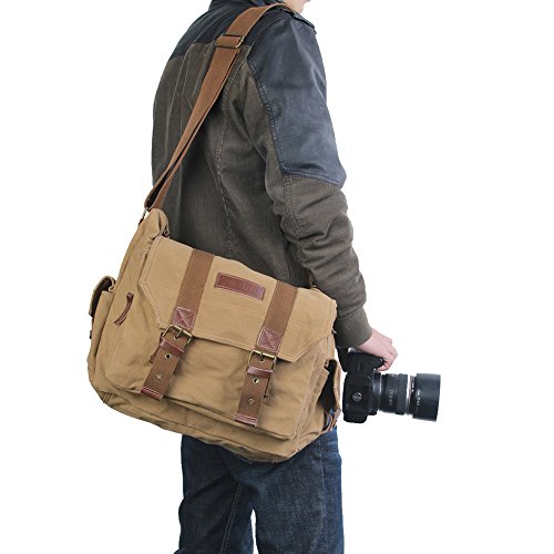 Koolertron Canvas DSLR SLR Camera Shoulder Bag Backpack Rucksack Bag For Sony Canon Nikon Olympus