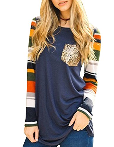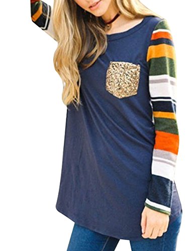 - Crew neck,patchwork,pullover sweatshirt tops,striped sleeve shirts with front pockets perfect match with jeans,leggings or shorts.