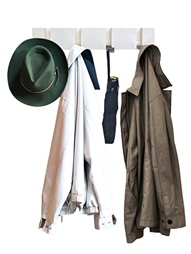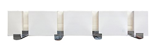 Headbourne 8049E 16" Modern White Wood Hook Rail / Coat Rack with 4 Chrome Flip Hooks