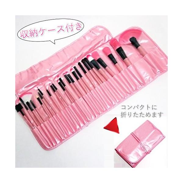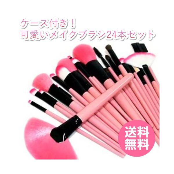 【送料無料】ピンクのケース付き!可愛いメイクブラシ24本セット柔らかく使いやすいメイクブラシ24本のセットです