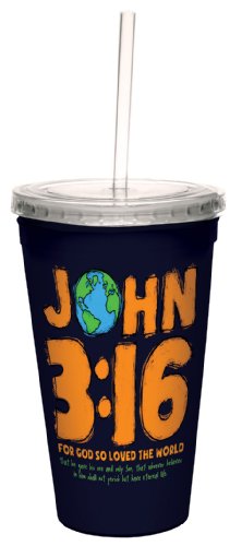 Tree-Free Greetings cc34201 Hand Drawn: John 3:16 Artful Traveler Double-Walled Cool Cup with Reusable Straw, 16-Ounce