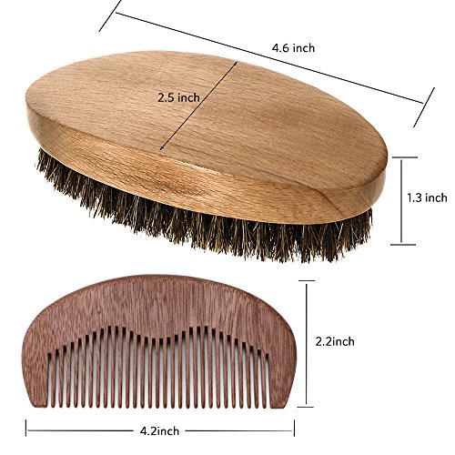- REAL WOOD HANDLES: beard brush comb are crafted from environmentally friendly beechwood , being solid yet smooth to the touch. A perfect combination. Small but mighty. Its dimensions:4.7”L x 2.5”W x 1.25”H. Bristle Lenght: 1.02”?the ergonomic design fits the palm of your hand rather comfortably